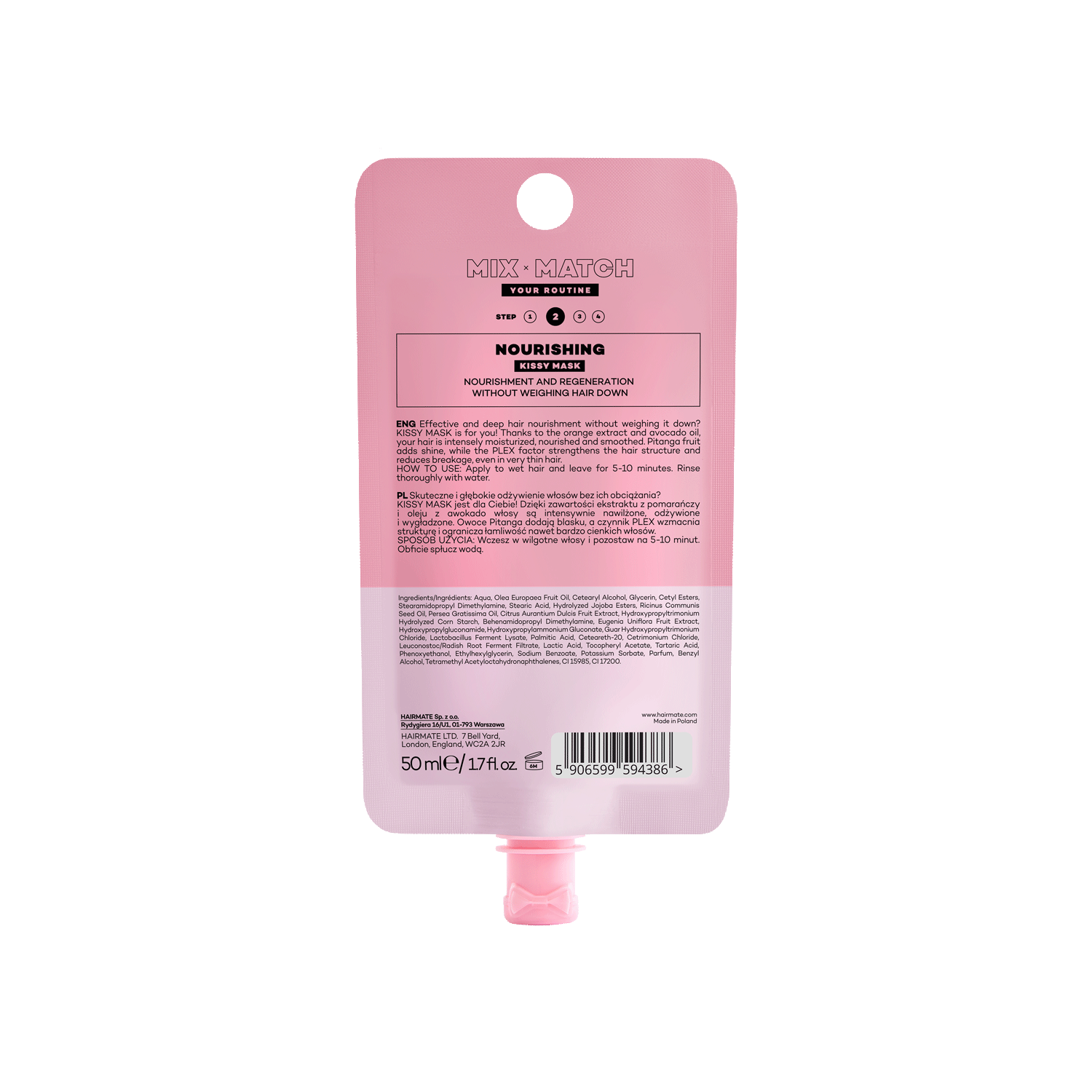 Nourishing power for fine hair! KISSY MASK restores and strengthens strands with avocado oil and orange extract, while Pitanga and PLEX protect hair structure. Light yet powerful.