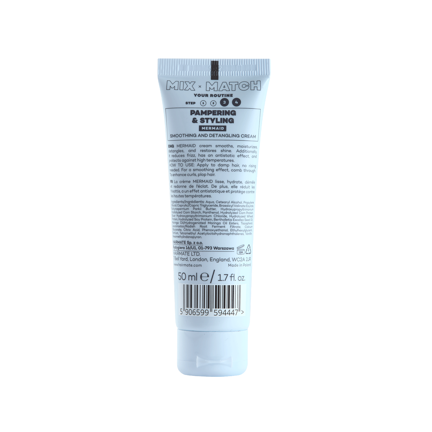 No rinsing, just apply and go! MERMAID moisturizes, smooths, and reduces frizz. It has anti-static properties, protects against heat, and makes detangling easier. Perfect for daily hair pampering.