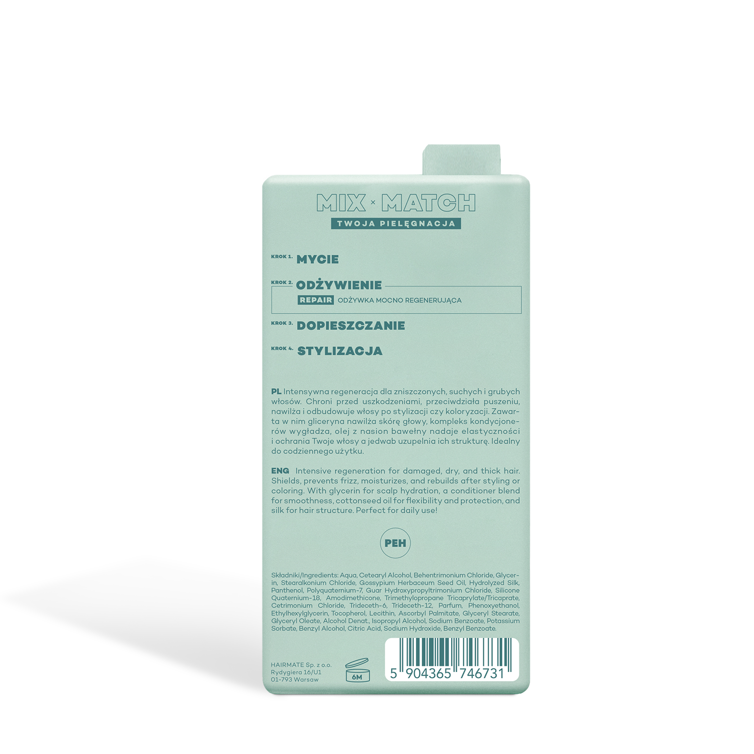 Intensive repair for damaged, dry, and thick hair. Protects against damage, counters frizz, moisturises, and repairs hair after styling or colouring. The glycerine moisturises the scalp, the conditioning complex smooths, cottonseed oil adds elasticity and protects your hair, and silk replenishes its structure. Ideal for daily use.