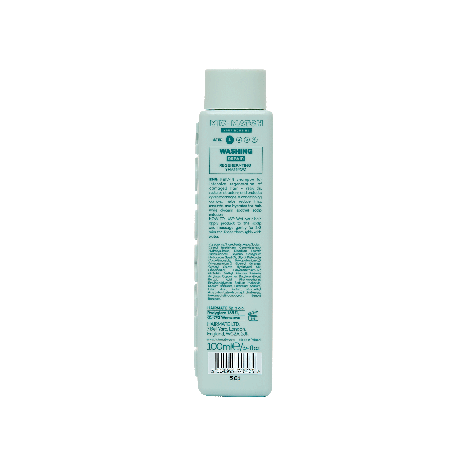 Need instant hair repair? REPAIR SHAMPOO rebuilds strands after styling and coloring. Glycerin hydrates the scalp, conditioner complex smooths hair, and cottonseed oil adds elasticity. Travel-size, maximum restoration power.