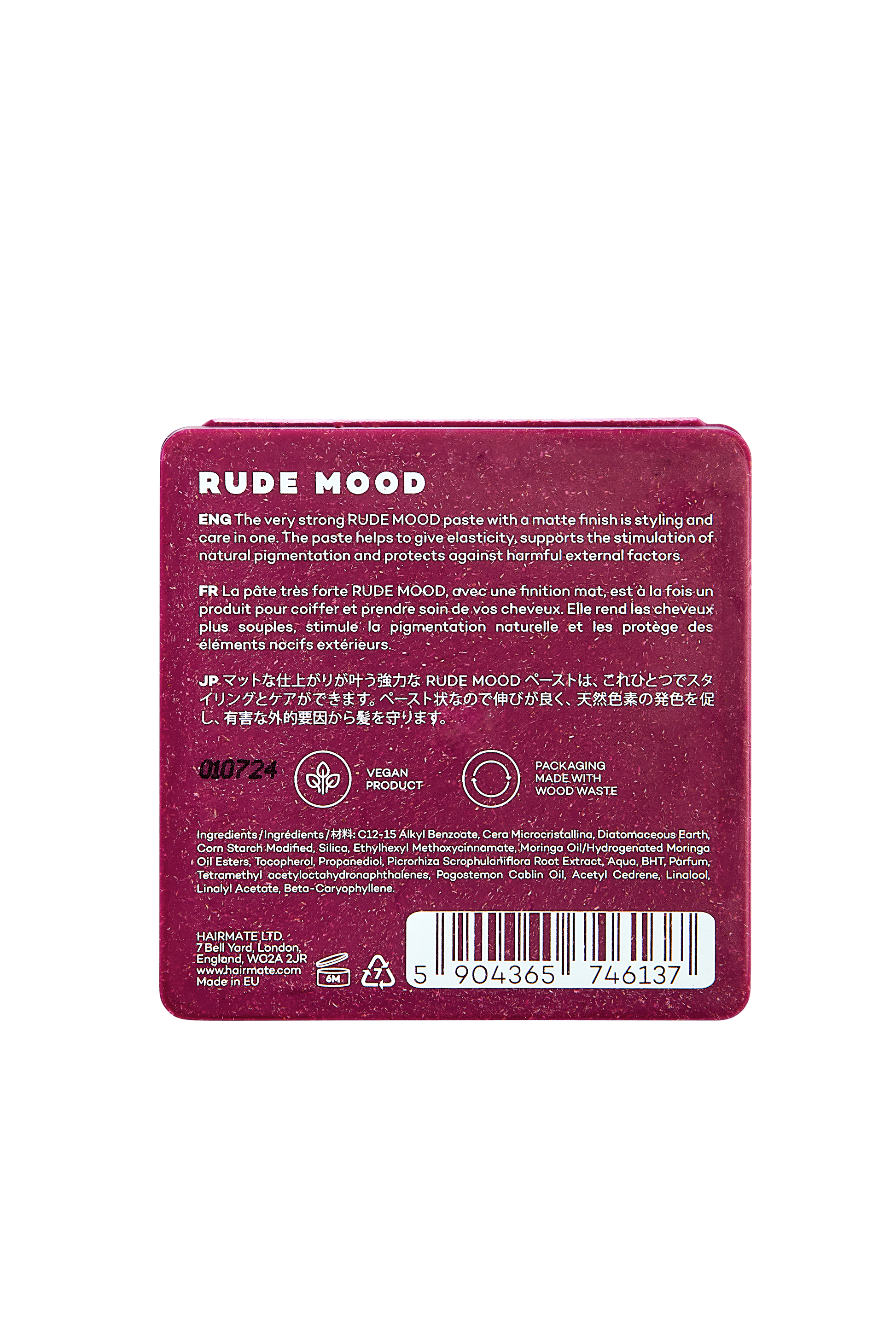 Love bold, fearless hairstyles? RUDE MOOD is an extra-strong matte paste that blends styling with care. Moringa oil boosts elasticity, while scorpion katuca root extract enhances natural pigmentation – for daring, statement-making looks. Take control and own your style.
